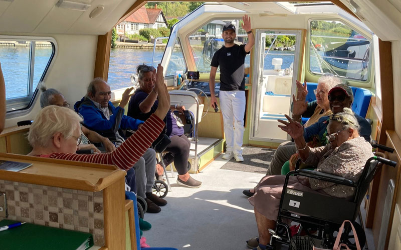 Our own minibus takes residents and their carers for days out to locations like the Thames at Henley, and local ten pin bowling.